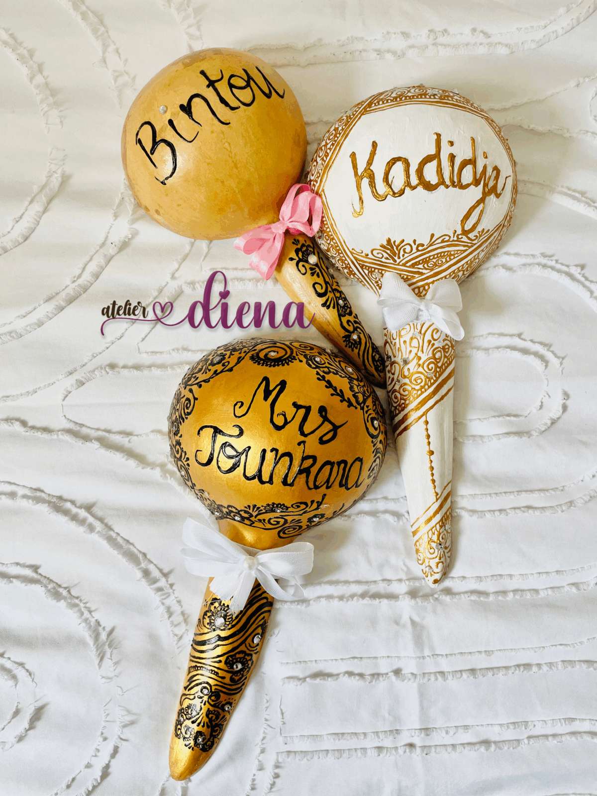 Atelierdiena vous accompagne dans la personnalisation de louches (galama) et calebasses traditionnelles pour vos événements (magno compé, henné Time, EVJF…) ou pour sublimer votre intérieur.